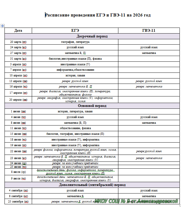 - Расписание проведения ЕГЭ и ГВЭ в 2026 году